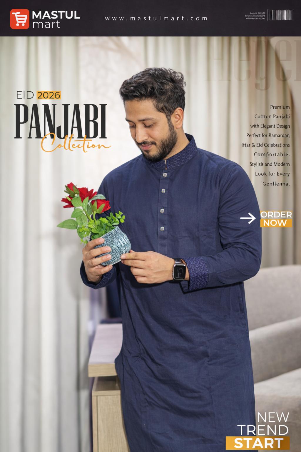 Crafted from premium cotton fabric, this Panjabi ensures superior comfort, breathability, and a smooth finish for long wear. The detailed pattern gives it a festive and luxurious vibe, making it perfect for Eid, weddings, and special occasions.